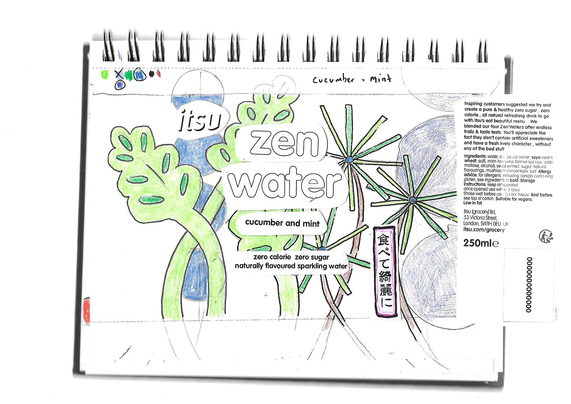 zen' water was a project commissioned by Itsu grocery. Zen'water is a range of light, healthy sparkling drinks made with natural flavours. There are 5 flavours in total, each with its own visual identity characterised by bold dynamic illustrations and graphic elements. Zen'water is now available in itsu stores all over the UK as well as in Waitrose.
